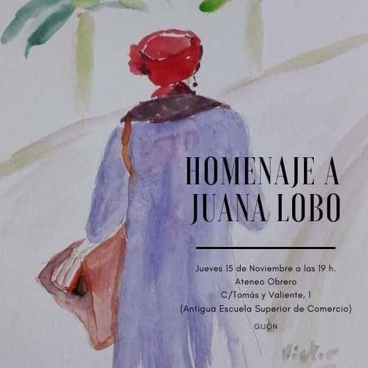El próximo jueves, 15 de noviembre, a las 19H.00', en el local social del Ateneo Obrero de Gijón (Escuela de Comercio, calle Francisco Tomás y Valiente, 1-2ª Planta), el Ateneo Obrero de Gijón y el Grupo Eleuterio Quintanilla de Educación Intercultural rinden homenaje a una profesora muy querida:Juana Lobo, en el que intervendrán amigos, amigas, compañeros, compañeras y antiguos alumnos y alumnas, con el fin de glosar su figura.