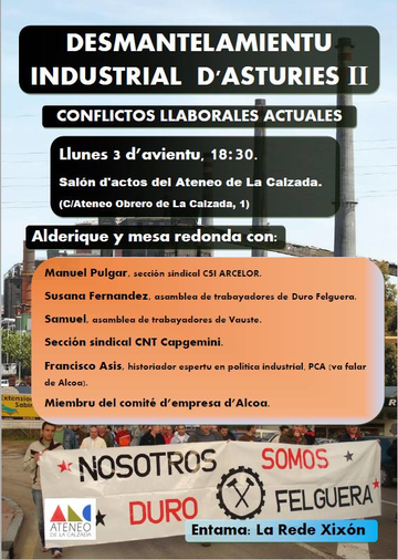 CHARRA SOBRE'L DESMANTELAMIENTU INDUSTRIAL D'ASTURIES II, CONFLICTOS LLABORALES ACTUALES: