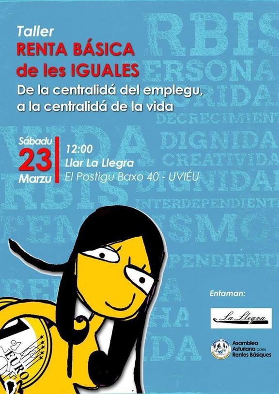 El sábadu n'horariu de mañana vamos acoyer un interesante taller, dinamizáu por La Asamblea Asturiana pola Renta Básica, nel qu'aprender, aldericar y compartir sobre la iniciativa de Renta Básica n'Asturies.