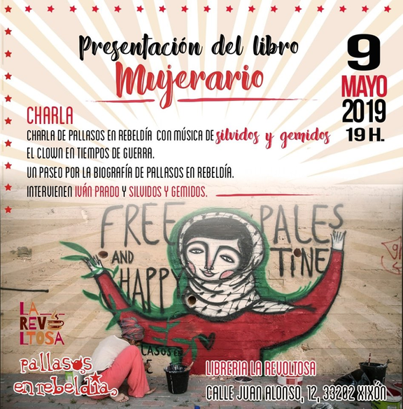 Lo que esta pasando en Palestina no tiene nombre , de nuevo el maldito fascismo sionista esta masacrando a un pueblo al que le quiere quitar hasta la sonrisa, pero eso JAMAS lo conseguiran , entre otras cosas gracias a personas como las que participaran en el Cafe La Revoltosa en Xixón este JUEVES en la presentación del libro Mujerario , la charla de Pallasos en Rebeldia y la Música de Silvidos y Gemidos , una actividad muy interesante y amena , porque todas las personaS TODAS tienen derecho a una vida digna y por supuesto se incluye al grandisimo pueblo palestino que hace muchos años está sufriendo un holocausto racista .