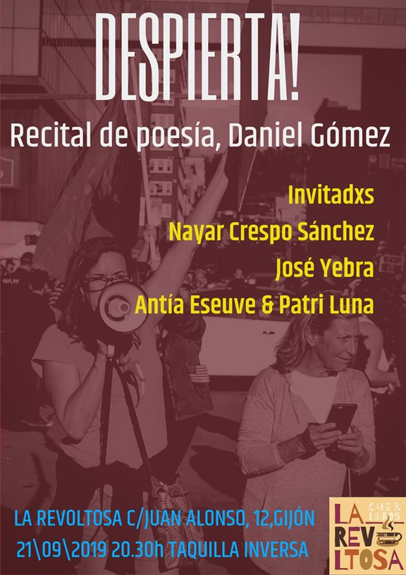 El sábado de noche también hay en La Revoltosa, libros y café jaleito bueno, se viene Daniel Gómez Gracia y vamos a performear la menda, la Patri con sus canciones bonicas y un par de amigues más!