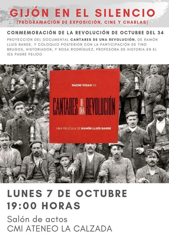 Este lunes, 7 de octubre, cine y debate en el Ateneo: Aniversario de la Revolución de 1934. Proyección del documental CANTARES DE UNA REVOLUCIÓN de Ramón Lluis Bande.