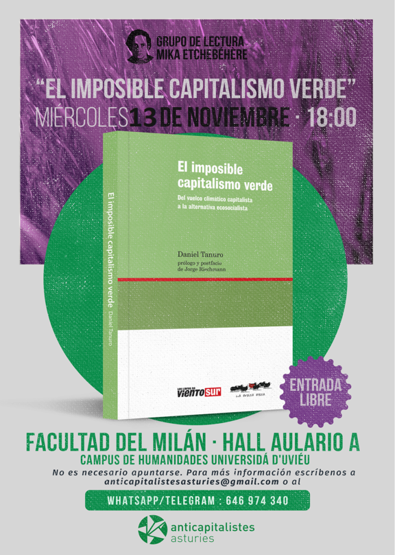Primer libro: "El imposible capitalismo verde" de Daniel Tanuro , editado por Viento Sur.