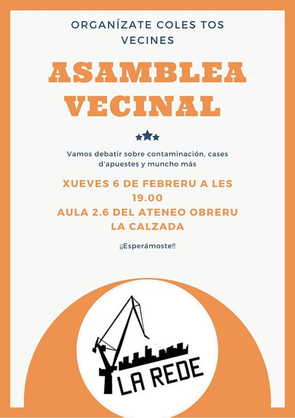 Esti xueves asamblea nel barriu sobre contaminación, cases d'apuestes, cineforums, y muncho más.