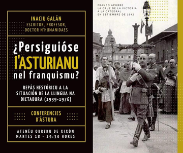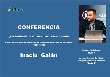 Este martes, 18 de febreru, a les 19H.30', nel llocal social del Atenéu Obreru de Xixón (2ª Planta de la Escuela de Comercio, cai Francisco Tomás y Valiente, 1), ÁSTURA organiza una conferencia sobre ¿Persiguióse l'Asturianu nel franquismu?Repás hestóricu a la situación de la Llingua Asturiana na dictadura (1939-1976), a cargu de Inaciu Galán.