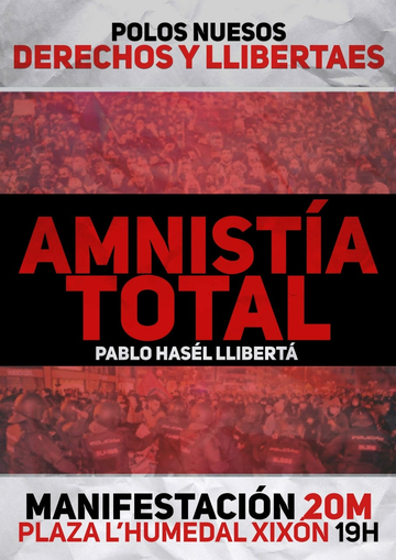 ¡Por nuestros derechos y libertades! ¡Por la amnistía total! !Por la libertad de Pablo Hasél!