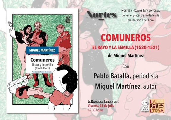 Este viernes, en colaboración con @nortes.me y @hojadelata_editorial , tendremos a Miguel Martínez y Pablo Batalla hablando sobre 'Comuneros. El rayo y la semilla', el interesantísimo ensayo sobre el levantamiento de las Comunidades de Castilla contra el mal gobierno de Carlos V. Otra Historia Moderna de España es posible…