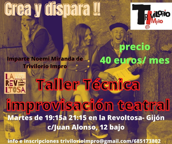 Será todos los martes de 19:15 a 21:15 y aún quedan plazas disponibles así que no tardéis apuntaros escribiendo a trivilorioimpro@gmail.com o llamando al número 685173802. El precio es de 40€ mensuales.