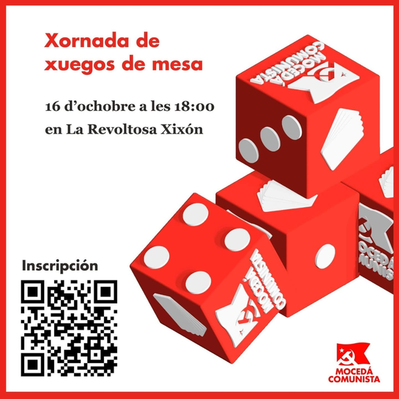 Dientro d'esta llinia, na Mocedá Comunista organizamos una xornada de xuegos de mesa pal próximu 16 d'ochobre a les 18:00 en La Revoltosa (Xixón)