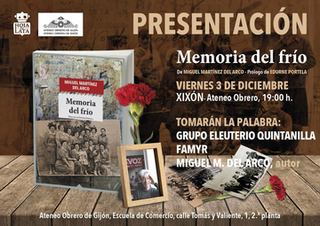Mañana viernes, 3 de diciembre, a las 19H.00', en el Vestíbulo de la 2ª planta de la Escuela de Comercio (Cl Francisco Tomás y Valiente, 1), el Ateneo Obrero de Gijón y Hoja de Lata Editorial organizan la presentación del libro Memoria del frío, de Miguel Martínez del Arco.