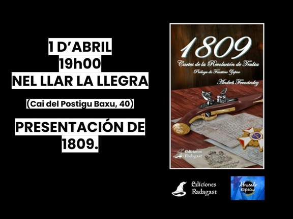 Esti Vienres 1 d'Abril Andrés Fernández Menéndez presenta'l so llibru, 1809: Cartes de la Revolución de Trubia, acompañáu por Faustino Zapico.