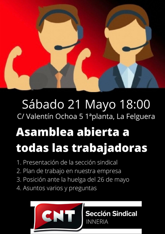 Asamblea abierta a todas las trabajadoras.Presentación Sección Sindical de Telemarketing