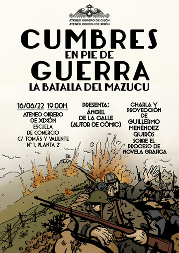 El próximo jueves, 16 de junio, a las 19H.00', en el local social del Ateneo Obrero de Gijón (2ª Planta de la Escuela de Comercio, Cl Francisco Tomás y Valiente, 1), tendrá lugar la presentación del proyecto Cumbres en pie de guerra. La batalla del Mazucu, una novela gráfica de Guillermo Menéndez Quirós.