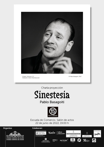 La vista ocupaba siempre un papel protagonista en las alegorías barrocas de los sentidos como el más noble de los cinco. Por ello, puede decirse que Sinestesia está sonando en los ojos de Pablo Basagoiti (Madrid, 1973) desde 2016, cuando decidió abordar a partir de la fotografía otra disciplina artística que por entonces le resultaba ajena: la música. Al reto de dar una imagen al sonido -aspecto recurrente en el arte de vanguardia: Wassily Kandinsky, Paul Klee, John Cage, Yves Klein, Allan Kaprow…-, se sumaba otro en el campo de la representación, pues al autor nunca le había gustado el género del retrato, ni trabajar dentro del estudio. Esperaba, por tanto, que la música se convirtiese en un medio de acercamiento al personaje que dotase al retrato de mayor profundidad psicológica, elevando su calidad, al mismo tiempo que el retratado se transformaría en un vehículo para plasmar visualmente la esencia de una melodía. Durante los últimos años, Sinestesia ha permitido a Pablo Basagoiti establecer un estrecho vínculo con los músicos que han pasado por la Fundación Museo Evaristo Valle en Gijón, centro cultural que ha acogido innumerables ciclos de conciertos y tutelado a artistas desde su constitución en 1981. Con motivo de recitales, grabaciones o clases maestras, han posado para el fotógrafo desde jovencísimas promesas locales a intérpretes de larga trayectoria y fama internacional, además de los Virtuosos de Moscú y sus descendientes, estrechamente ligados a la escena musical asturiana desde 1990. Todos han aceptado ser fotografiados entre ensayos, bajo una condición del autor: evocar en sus mentes, mientras la cámara les enfoca, una pieza musical de su elección.